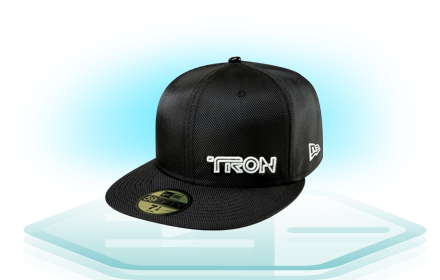 The iconic 5950 cap silhouette. To reflect the suit used by "Users" in the TRON world, this cap is fabricated with ballistic nylon on the crown and visor, and grey reflective fabric from 3M on the undervisor. The front of this cap features the TRON logo in a flawless patent leather appliqué', with the TRON Legacy word mark on the rear, both in glow-in-the-dark embroidery.
